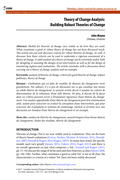 assessment of a theory of change. A solid analysis of a theory of change can be extremely useful, both for designing or assessing the designs of an intervention as well as for the design of monitoring regimes and evaluations. The article concludes with a discussion about carrying out a theory of change analysis and an example." (Abstract)