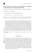 n made to suppress and silence them through the government’s targeted attacks, which can be characterized into three categories: classifying media as allies and enemies, the weaponization of laws, and personal and institutional attacks. The emergence of COVID-19 made press freedom even more challenging due to the threat of infection and government-imposed restrictions and measures. This research deployed interviews with multiple journalists and a review of secondary data. The study shows that state interference, challenges in fulfilling journalistic roles, and the obstruction of the free flow of information during the pandemic resulted in three levels of fear among journalists: fear of losing one’s network, fear of losing credibility, and fear of personal safety." (Abstract)