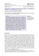of the COVID-19 health crisis on the media in countries with democratic deficits, such as Bulgaria. Studies on former Eastern bloc countries have become few and far between recently so this research aims to fill this gap by examining how the coronavirus pandemic and associated restrictions have impacted journalism practice in Bulgaria and how journalists, and independent media organisations responded and adapted to the pressures in 2020. Our findings from semi structured interviews with media practitioners show that it is the independent media that has borne the brunt of the crisis. In addition to existing challenges to press freedom, many Bulgarian journalists encountered new limits to their daily practice in reporting on a topic of significant public importance." (Abstract)
