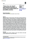 s and independent journalists left the peninsula to continue working in exile. This paper explores the phenomenon of informational annexation using a mixed methods approach consisting of in-depth interviews with media and IT professionals as well as digital ethnography and network measurements. It argues that, besides pressure from pro-Russian authorities, journalistic work in the area is challenged by legal and infrastructural factors such as the absence of legal and financial protections for Ukrainian journalists traveling to Crimea, lack of holistic digital security within media organizations, and increased Internet censorship in Crimea. By analyzing the risk perceptions and digital security practices of exiled and Crimean civic journalists, this paper explores how informational annexation challenges journalistic work on the infrastructural and organizational level, enabling the rise of civic journalism, and how it affects journalists' individual digital security practices. In the context of the current Russian invasion of Ukraine, this research provides insights into some of the informational annexation tactics used by Russians in the occupied Ukrainian territories." (Abstract)