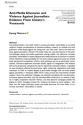 oliticians’ verbal attacks against the “lying press” and “fake news” may incentivize non-state actors to physically attack journalists. Building on dangerous speech, populist communication, and hostile media perceptions scholarship, I show that although anti-media public discourse may not feature explicit calls for violence, it increases the incidence of physical attacks against journalists. Using qualitative content analysis and survival models, I analyze original data on the content and timing of 696 anti-media messages featuring government officials and the timing and location of physical attacks by non-state actors against journalists during Hugo Chávez’s presidency. Estimates of Cox and instrumental variable models show that the frequency of anti-media messages is positively associated with the hazard of violence against journalists and that the relationship between discourse and violence is likely causal. I also find that the effect of discourse on violence is moderated by local patterns of electoral competition: anti-media discourse’s effect on violence against journalists is largest in locations where elections are highly contested." (Abstract)