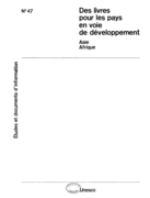 ale de livres (livres éducatifs, édition générale, distribution et promotion, circulation internationale des livres) — II. Conclusions et suggestions: Planification de la promotion — Suggestions relatives au programme de l'Unesco — Etude de certains aspects économiques de la promotion du livre en Afrique — Introduction — Le rôle des livres dans le développement en Afrique — La demande de livres en Afrique — L'offre de livres pour l'Afrique — Perspectives d'avenir en matière de promotion du livre." (Jean-Marie Van Bol, Abdelfattah Fakhfakh: The use of mass media in the developing countries. Brussels: CIDESA, 1971 Nr. 1825, topic code 19)