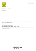 "Industrie culturelle — Industrialisation de l'esprit — Ce qui était création tend à devenir production — En tête de l'industrialisation de l'esprit, les mass media — Le problème de la diffusion suit celui de la production — Atteindre un maximum d'auditeurs, spectateurs, lecteurs —