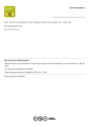 els, (avec forte prédominance d'un niveau très bas), obstacles politiques — L'origine et le contenu des messages utilisés — Prospection des mass media dans les pays en voie de développement." (Jean-Marie Van Bol, Abdelfattah Fakhfakh: The use of mass media in the developing countries. Brussels: CIDESA, 1971 Nr. 326, topic code 04)
