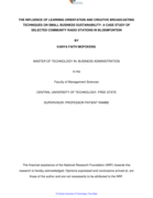 "The current study, which recognises the importance of creating learning organisations and the introduction of new broadcasting techniques to the survival of an organisation, explores the influence of learning orientation (LO) and creative broadcasting techniques (CBT) on the sustainability of CRS.