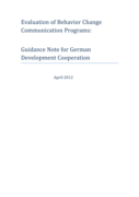 It is divided into three parts. The first part presents the main general aspects that need to be taken into consideration when monitoring and evaluating BCC interventions with a focus on HIV-related BCC approaches. More specifically, a general framework for monitoring and evaluation is presented, including among others information on the use of appropriate indicators, the development of an evaluation plan, different types of evaluation, study designs of summative evaluations, statistical analysis and dissemination of the evaluation results. Based on this theoretical background presented in part one, the second part draws conclusions, presents recommendations and gives practical advice on monitoring and evaluating HIV BCC programs. Three types of HIV BCC interventions, relevant to the work of German Development Cooperation (GDC), are also here discussed; these are the tool Join-in-Circuit, peer education programs and mass media campaigns. The third part presents four country examples of M&E of HIV BCC interventions implemented by GDC programs. These were discussed during a short-course on evaluation of BBC interventions offered by GIZ from 9]10 March, 2012 in Johannesburg, South Africa." (Executive summary)