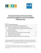 half of 2019. In total, 2.2 million people face crucial unmet needs created by the deterioration of their living conditions; among them more than 918,000 people are in need of services linked to their survival. Efforts are underway to scale up the response to cope with these escalating needs. In late October 2019, the Humanitarian Country Team was activated in Burkina Faso, replacing the Humanitarian-Development Country Team, to enable dedicated leadership in coordination and information management. And between December 2019 and January 2020, the CDAC Network – in partnership with Ground Truth Solutions and with funding from the H2H Network and with the assistance of UN agencies and CDAC members operating in the country – undertook a scoping mission to the country to assess the status, current strengths and needs related to response-wide Communication, Community Engagement and Accountability." (CDAC website)