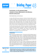 ning in Rural Radio in terms of broadcasting, audience analysis and training of the trainers. It also includes sections on support to networking activities and the use of radio as a means of disseminating market information." (Abstract)
