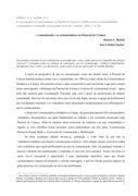 agentes e lideranças da Pastoral da Criança e os meios de comunicação locais – agora feito não somente pela Coordenação Nacional, mas com o apoio de profissionais da própria comunidade. Para isso foi necessário abrir uma via de mão dupla, em que a equipe de profissionais da Coordenação Nacional e os voluntários eram alimentados reciprocamente com informações e novos conhecimentos. A Rede dos Comunicadores Solidários à Criança, da qual participaram 500 comunicadores voluntários, desempenhou um papel fundamental no trabalho e nos resultados alcançados pela Pastoral da Criança. Além de atuarem como assessores de imprensa em suas comunidades e regiões, os seus membros foram treinados como capacitadores em três áreas: Comunicação Pessoal e Grupal, Rádio e Assessoria de Comunicação e Mobilização. Os bons resultados obtidos devem-se, sobretudo, à visão clara de que são os voluntários/reeditores que fazem a comunicação acontecer. Nem sempre, porém, é possível contar com voluntários que sejam profissionais da área de comunicação. Mas, em qualquer situação, é preciso o domínio dos instrumentos e conteúdos (e com eles seus sentidos). Assim, em todos os casos, fez-se necessária a capacitação, e uma capacitação específica: mais que formar comunicadores capazes de produzir e veicular mensagens, é preciso formar pessoas capazes de gerar processos de comunicação em favor da mobilização." (Página 1)