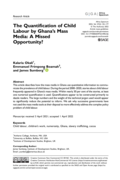 "This article describes how the mass media in Ghana use quantitative information to communicate the prevalence of child labour. During the period 2000–2020, stories about child labour frequently appeared in Ghana’s mass media. Within nearly 30 per cent of the stories, at least one numerical quan