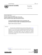 ported to have taken to counter disinformation. The Secretary-General notes that countering the different manifestations of disinformation requires addressing underlying societal tensions, fostering respect for human rights, online and offline, and supporting a plural civic space and media landscape." (Summary)