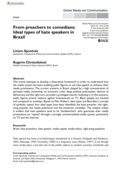 , deep political polarization, distrust of democracy and the right turn, provides a privileged case for analysing it. In this scenario, public figures preach violence against homosexuals on TV. Black people are insulted and compared to monkeys. Based on Max Weber’s ideal types and Bourdieu’s concept of symbolic capital, four ideal types have been identified: the hate preacher, the rightwing populist, the media polemicist and the intolerant comedian. The analysis makes it evident that hate speakers tend to be ‘backbenchers’ who guarantee their media prominence (or ‘capital’) through a strongly commercialized media system, particularly on TV and the Internet." (Abstract)