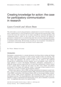 ting about it, neither are they acting alone. From this perspective the emphasis of participatory communication is on communicating rather than extracting or delivering information. Participatory methods can communicate research findings in new ways and add depth and meaning to articulations of knowledge. This knowledge can easily get ‘lost in translation’ when findings are synthesised or communicated though conventional research outputs alone." (Abstract)