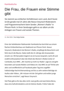 "Sie stammt aus einfachen Verhältnissen vom Land, doch heute ist die gerade mal 24 Jahre alte Noeun Sreynoch Moderatorin und Programmmacherin beim Sender „Women‘s Radio“ in Phnom Penh. In ihren Sendungen geht es vor allem um die Anliegen von Frauen und soziale Themen." (Einleitung)