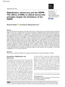 ting the EU’s General Data Protection Regulation in their respective countries. The views of DPAs are important given their special role in monitoring newly emerging digital technologies and how their use may impact on the functioning of democracies. The article highlights three key themes which emerged in interviews with 18 DPAs in answer to the question about what they consider to be the greatest challenges to democratic freedoms. These are: (1) threats to elections due to the manipulation of voters; (2) discriminatory effects of automated decision-making; and (3) broader chilling effects on democratic norms due to ubiquitous surveillance. The article then analyses the solutions named by DPAs to mitigate these challenges to identify their governing, or political, rationalities. The paper finds that the solutions available to DPAs to manage democratic harms tend to emphasise individual over collective responsibility and are connected to broader currents of neoliberal governance. The paper highlights the ways in which some DPAs act as important critical voices within their respective jurisdictions to draw political attention to potentially anti-democratic effects of certain practices, such as profiling, or to the model of digitalisation as it is currently constructed." (Abstract)