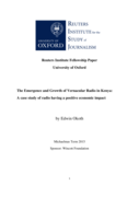 "Edwin Okoth, a business journalist at the Daily Nation in Kenya, has examined whether the recent boom in vernacular radio stations in his country has improved the livelihoods of ordinary citizens. In his research paper Edwin uses a case study of how one vernacular radio station called Ramogi FM, wh