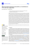 as part of a Preventing Violent Extremism (PVE) project, intended to create community resources for resilience, in the information sphere, towards conflict issues contributing to recruitment by non-state armed groups such as Islamic State–Khorasan Province (IS–KP). Peace Journalism is familiar as the basis for media development aid in contexts of conflict; however, its use in an intervention aimed specifically at PVE is relatively new. The results showed that the programme was effective, it is argued, in terms of benefits transferred to and applied by participating journalists. A sample of articles after the training showed a markedly higher Peace Journalism quotient than a baseline sample of articles by the same journalists before it. This suggested that the training and mentorship had successfully stimulated and enabled journalistic agency, taking account of constraints imposed by media structures and wider political and social contexts. The latter have become steadily more onerous under the Islamic Emirate (Taliban) government, in power since August 2021, according to international monitoring organisations. Implications are considered, in light of the findings, for future media development aid to Afghanistan." (Abstract)