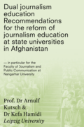 integrative design but which is completed externally in an editorial office (following the model of journalism programmes, for example, at German universities). This dual training programme aims to qualify as an academically certified journalist, recognised by professional associations and media fields. The proposal also set out to recommend further academic qualifications for journalism lecturers and professional training for practising journalists in Afghanistan, as well as recommendations for the legal, administrative and practical and/or administrative steps required for the medium-term establishment and trials of the model." (Preface)
