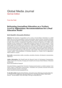 f journalists in fragile states should be conceptualised. Responding to dynamic developments in the Afghan media landscape and the resulting need for high-quality journalism education, this article proposes a reform model for journalism education on a tertiary level in Afghanistan. Based on research as well as a needs and feasibility assessment following the participatory action research (PAR) approach, target models and an implementation plan for educational reform were developed. This provides a potential blueprint for reforms in journalism education in fragile states, which considers social and cultural values and interests in the local context while drawing on the perspective of the outsider. This article presents the results of a project entitled 'Professionalisation of Journalism Education on a Tertiary Level in Afghanistan', which resulted in a manual." (Abstract)