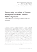 the trainers who were recruited from Swedish media houses to conduct training in Vietnam. A qualitative document analysis was used to examine the content with a conceptual framework built on notions of comparative media systems, global media ethics and the salience of social connections in Vietnam. The findings explore how the Swedish media aid intervened in the Vietnamese media by contributing to a technological transition of journalism although the training in newsroom management and media ethics were challenged by conflicting journalism ideology and social norms. The article contributes to the existing research on media development, reflections on media aid and the development of Vietnamese journalism by analysing project documents that provide first-hand information from a period when Vietnamese journalism underwent a dramatic transition towards the digitalized media system existing today." (Abstract)