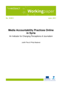 In addition, news websites have added new topics to the traditional news agenda by taking the audience into account, and thus have contributed to holding the media accountable for aspects the old media does not cover. Thus, at least in some cases, media has played the role of being a watchdog over political decisions, which role media has never previously adopted. have particularly contributed to a shift in society’s perception of the role of media by paving the way for media accountability practices in the field of responsiveness. Even though instruments for responsiveness might be part of an economic strategy of news websites to enter and survive the news media field, news websites have introduced an audience oriented journalism approach by providing collaborative story writing or possibilities for the audience to comment on news. This is a fundamental change in role perception as mobilising media was merely meant to serve the Baath elite and its ideas. Thus, the audience as a neglected actor of accountability seems to have entered the field." (Summary)