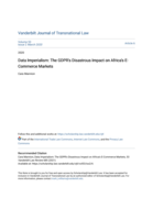 oachcountries that wish to engage with digital users in the EU must either comply with the GDPR's expansive data obligations or risk losing access to the world's largest trading block. This presents significant obstacles for several African nations. Notably, no African country currently has domestic laws that comply with the GDPR. Even if they did, several African countries lack stable judicial branches to enforce such laws, and many do not have the technological infrastructures or expertise to ensure ongoing compliance. Additionally, the GDPR's extraterritoriale ffects may amount to data imperialism, allowing the EU to impose its own definition of data privacy on African countries without concern for their unique social values and economic realities. This Note analyzes how the GDPR negatively impacts several African countries, as well as the difficulties in solving these economic and social problems. Although there are no easy solutions for these complex issues, this Note recommends that African countries adopt data privacy legislation at the regional level, create regional enforcement authorities, and invest in technological infrastructure and training." (Abstract)