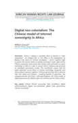 ork closely with Chinese state authorities to export technology to Africa in order to extend China’s influence and promote its cyberspace governance model. This contribution argues that the rapid expansion across Africa of Chinese technology companies and their products warrants vigilance. If African governments fail to advance their own values and interests – including freedom of expression, free enterprise and the rule of law – with equal boldness, the ‘China model’ of digital governance by default might very well become the ‘Africa model’." (Abstract)