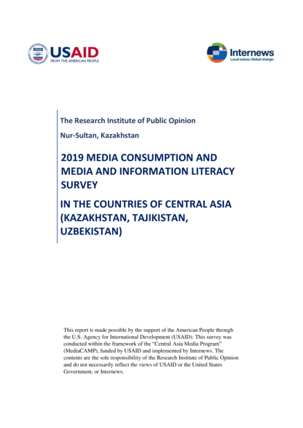 2019 Media Consumption and Media and Information Literacy Survey in the Countries of Central Asia (Kazakhstan, Tajikistan, Uzbekistan)