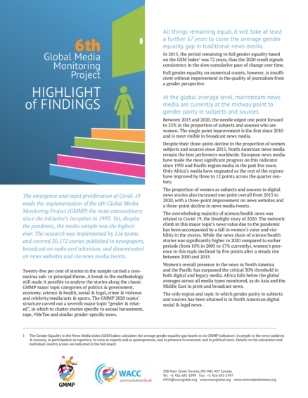 Global Media Monitoring Project (GMMP);World Association for Christian Communication (WACC) (2020), 4 pp.