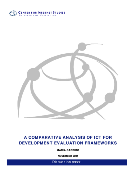 "This study presents preliminary findings of the mounting efforts to develop systematic evaluation frameworks for ICT for Development programs. The evidence from these findings shows that there is increasing interest for understanding the impacts that ICT initiatives are having in realizing socioeconomic change. Efforts from diverse organizations -- academia, foundations, international research institutes, development organizations and practitioners in the field -- are generating valuable information that piece by piece will better inform not only future investments in the field, but most importantly, how these investments are making a difference in the lives of poor and underserved communities. This study presents preliminary findings of different approaches used to evaluate programs in the following areas: 1) E-government; 2) E-education; and 3) ICT and Civil Society. An additional set of evaluation frameworks for Telecenters, E-health, Gender, Poverty Reduction and Small and Medium Enterprises are included in the Annexes for reference." (Abstract)