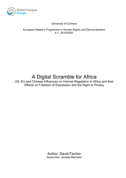 "Divisive Internet regulation is fragmenting the formerly worldwide web into numerous shards that follow their own rules. The US, the EU and China are influential in shaping regulation even beyond their own jurisdictions, with consequences for human rights, particularly in Africa. This paper argues that, as of 2020, the Western post-9/11 security agenda and uncontrolled digital capitalism had a more detrimental impact on Internet regulation in Africa than the authoritarian Chinese concept of Internet sovereignty, seriously affecting freedom of expression and the right to privacy online. However, particularly authoritarian governments in Africa use China’s economic and political agenda to their advantage, leaving civil societies at the mercy of digitally empowered states. Direct ways of impacting Internet regulation in Africa include loans, development programs or influential laws, whereas indirect means include engagement in multilateral and multi-stakeholder fora. Besides the political and economic interests of states, the datafication agendas of ICT corporations shape Internet landscapes in Africa. An emerging data protection framework pushed by the EU has the potential to mitigate their impact. Other means of protecting human rights require a united approach by the African Union and a deconstruction of digital capitalism and dependence relations between African states and the Global North." (Abstract)