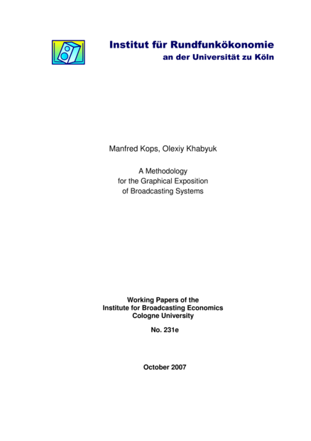 "This paper is a methodological supplement to the Working Paper No. 223e of the Institute for Broadcasting Economics by Manfred Kops: "A Revenue-Based Methodology for the Classification and Comparison of Broadcasting Systems". It explains the methodology to generate graphs that describe and compare broadcasting systems by means of Microsoft's Excel." (Publisher description)
