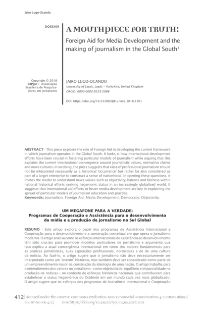 "This piece explores the role of Foreign Aid in developing the current framework in which journalism operates in the Global South. It looks at how international development efforts have been crucial in fostering particular models of journalism while arguing that this explains the current international convergence around journalistic values, normative claims and news cultures. In so doing, the piece suggests that raise of professional journalism should not be interpreted necessarily as a historical ‘occurrence’ but rather be also considered as part of a larger enterprise to construct a sense of nationhood. In opening these questions, it invites the reader to understand news values such as objectivity, balance and fairness within national historical efforts seeking hegemonic status in an increasingly globalised world. It suggests that international aid efforts to foster media development are key in explaining the spread of particular models of journalism education and practice." (Abstract)