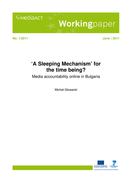 "There is not much debate on the development of media accountability (MA) systems in Bulgaria and even less relate to online media. This is due to the early stage of introduction of self-regulatory mechanisms on the Internet as well as the users’ behavior since priority is still given to traditional media organizations. Research has proved that due to unclear legislative framework and the lack of effectiveness in the implementation of media regulation (ownership, media code of ethics, the Council for Electronic Media) many problems with regard to the performance of traditional MA institutions have been observed. Thus, many distinctions between theory and practice exist and a suitable level of media independence from political interference or pressure has yet to be achieved. Very few media organizations have introduced mechanisms supporting the level of actor transparency, including bylines, profiles of journalists, media blogs, published mission statements or information on media ownership. Furthermore, not every media outlet that signed the media code of ethics has published the document on its website. Social networks have been so far the most popular instruments fostering the transparency of media production, with the significant example of Facebook – the most popular online medium in Bulgaria in 2010. However, with the exception of practice related to online news comments, most of the mechanisms that could further improve the feedback activities of different audience groups and thus, the level of responsiveness, have been introduced by only a few media organizations." (Conclusions, page 19)