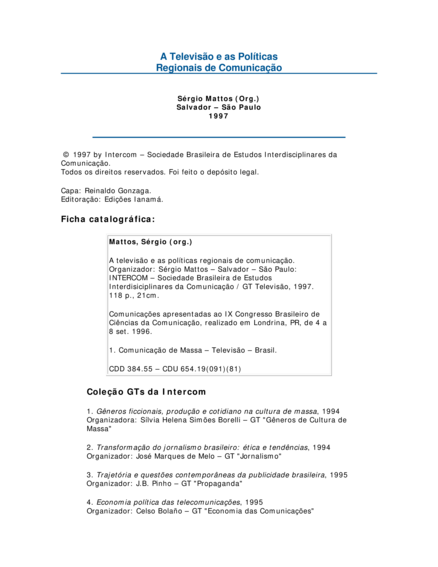 Comunicações apresentadas ao IX Congresso Brasileiro de Ciências da Comunicação, realizado em Londrina, PR, de 4 a 8 set. 1996.