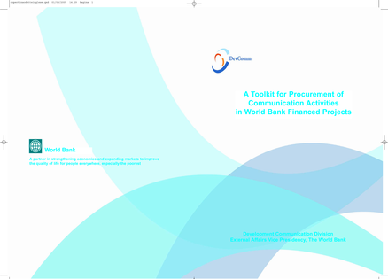 "This Toolkit on Procurement of Communication Activities is intended to help World Bank staff and client governments procure communication services in accordance with World Bank procurement guidelines. Communication activities do not always fit within the simple procurement distinction of works, goods and services. We have developed this toolkit to provide guidance on how to align them with the policies and procedures of the World Bank Procurement Guidelines. In preparing this toolkit, we identified specific features of communication-related activities that differ substantially from other activities procured under World Bankfinanced projects, and reviewed relevant documentation from most projects implemented in the past five years that included one or more communication components. We also interviewed many communication specialists, task team leaders and procurement specialists involved in projects with communication components, as well as local representatives and managers in the implementing agencies and with communication industry representatives. This toolkit identifies procurement issues implementing agencies commonly face in designing communication components and provides suggestions on how to mainstream communication components into project design, procurement planning and implementation." (Foreword)