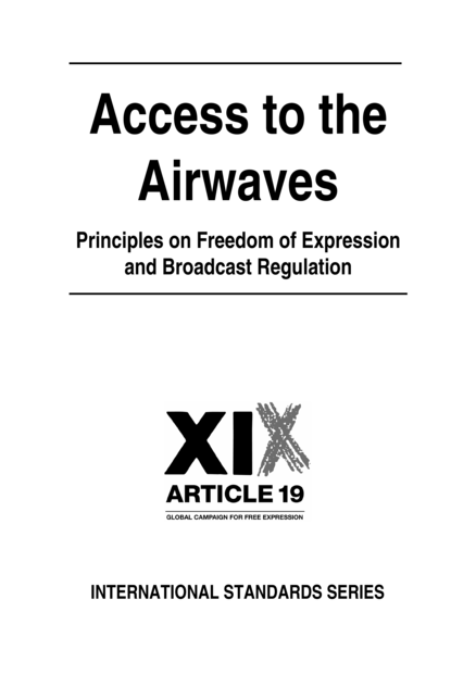Access to the Airwaves: Principles on Freedom of Expression and Broadcast Regulation