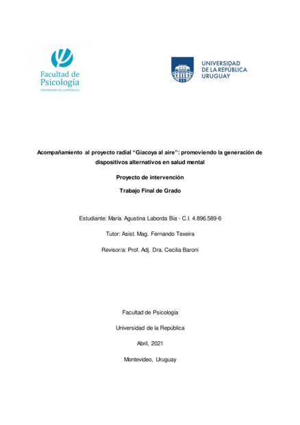 Acompañamiento al proyecto radial “Giacoya al aire”: Promoviendo la generación de dispositivos alternativos en salud mental