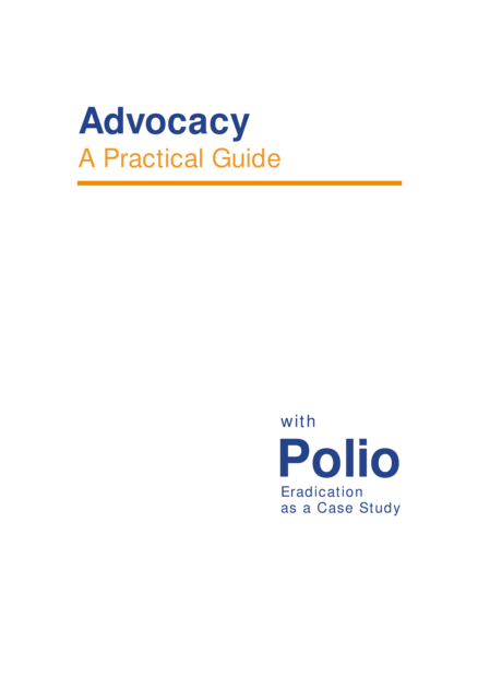 "Successful advocates do their homework on an issue and build an interesting case. They organize networks and coalitions to create a groundswell of support that can influence key decision-makers. They work with the media to help communicate the message. This practical guide outlines four basic steps that are essential for an effective advocacy initiative — documenting the situation, packaging the message, working with the media and mobilizing others. It contains specific examples and ideas, and leaves it up to the user to pick and choose. Obviously, the advocacy strategy varies from target group to target group and from country to country. What works for politicians in Oslo does not necessarily work with health experts in Delhi. Users of this guide are encouraged to select the parts of this booklet that they find useful, borrow successful ideas from others, adapt these creatively to suit their own environment, be innovative, positive and active." (Page 5)