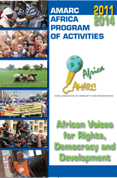"The present Program of activities is informed by the AMARC Africa Strategic Plan of Action adopted in 2009 for the 2011 to 2014 period. Its strategic objective is to empower poor communities through implementation of their right to access to communication and exercise their freedom of expression in order to promote social justice, sustainable, democratic and participatory human development. OBJECTIVE 1: Advocacy and research to promote and defend policy, legal anregulatory frameworks that enable community media to operate. OBJECTIVE 2: Knowledge sharing and capacity building for community media sustainability. OBJECTIVE 3: Contents and social action campaigns to reinforce the social, developmental and humanitarian impact of community media. OBJECTIVE 4: Gender equality and women’s rights. OBJECTIVE 5: Institutional and network development." (Executive summary, pages 3-4)