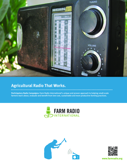 "Participatory Radio Campaigns (PRCs) were developed by Farm Radio International as a way to help farmers learn about, evaluate, and introduce new agricultural practices that they are interested in trying. With training and facilitation support from Farm Radio International, selected radio stations work closely with farmers and farmer organizations, agricultural extension and advisory services, researchers and others to carefully plan and deliver a four-six month radio campaign. During the PRC, farmers are able to explore, exchange knowledge, gain information and share experiences with a new agricultural practice that can improve their family’s food security. Lively and entertaining, PRCs feature the voices, stories and perspectives of ordinary farmers through a mix of radio formats, including panel discussions, vox pops, village debates, phone-in shows, mini-dramas and music. Farmers provide feedback and are involved in monitoring and evaluating the PRCs throughout. New Information Communication Technologies (ICTs) such as cell phones, MP3 players, interactive voice response systems, and bulk SMS messaging systems are linked with radio to boost the interactivity, reach and accessibility of PRCs." (Page 2)