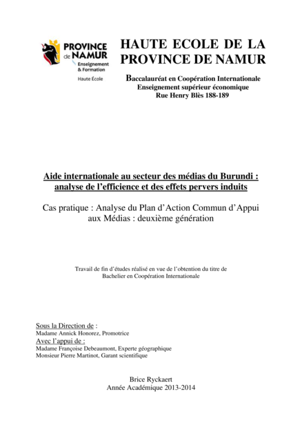 Aide internationale au secteur des médias du Burundi : Analyse de l’efficience et des effets pervers induits. Cas pratique : Analyse du Plan d’Action Commun d’Appui aux Médias. Deuxième génération