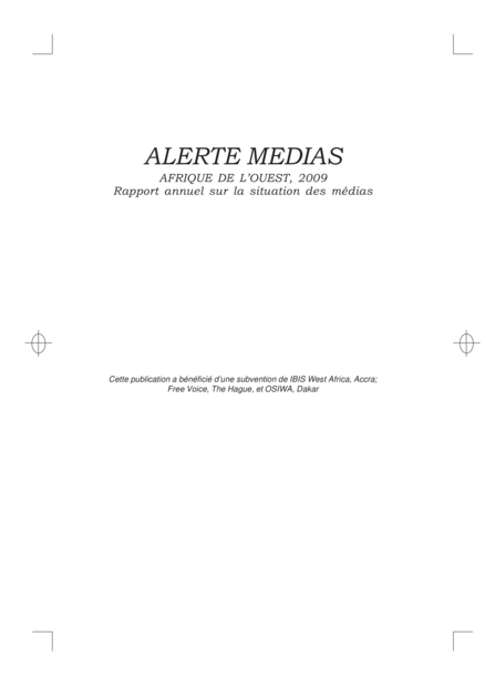 Alerte medias: Afrique de l'Ouest, 2009: Rapport annuel sur la situation des médias