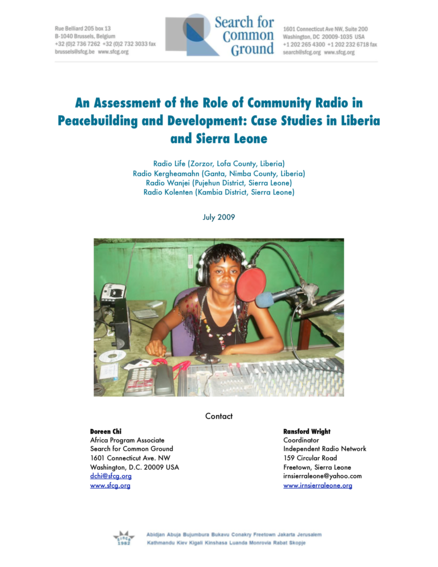 "This five-page report details the results of an evaluation of four community radio stations in rural Sierra Leone and Liberia. The evaluation focused on areas still struggling to achieve meaningful development in a post-conflict setting and was designed to assess the relationships between drivers of development and community radio stations. The study found that community radios are significantly impacting development in their communities via relationships with local and international non-governmental organisations (NGOs).