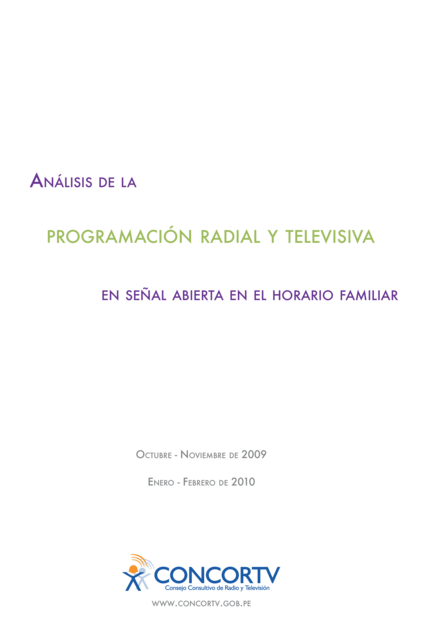 "Los principales temas considerados fueron el país de origen y géneros radiales y televisivos, la clasificación de la programación, y el análisis de la presencia de violencia, sexualidad, lenguaje inapropiado, contenido educativo y conductas disruptivas en la radio y televisión. En televisión, se analizaron siete canales de señal abierta (utilizando la señal recibida en Lima): Frecuencia Latina, América TV, Panamericana TV, TV Perú, ATV, RBC y Red Global [...] En total, se analizaron 1027 emisiones de programas. En radio se analizaron 19 programas de siete emisoras de radio en señal abierta (utilizando la señal recibida en la ciudad de Lima): Radio Moda, Radio Programas del Perú (RPP), Cadena Peruana de Noticias (CPN), Radio Capital, Studio 92, Radio Okey y Radio La Mega." (Website CONCORTV)
