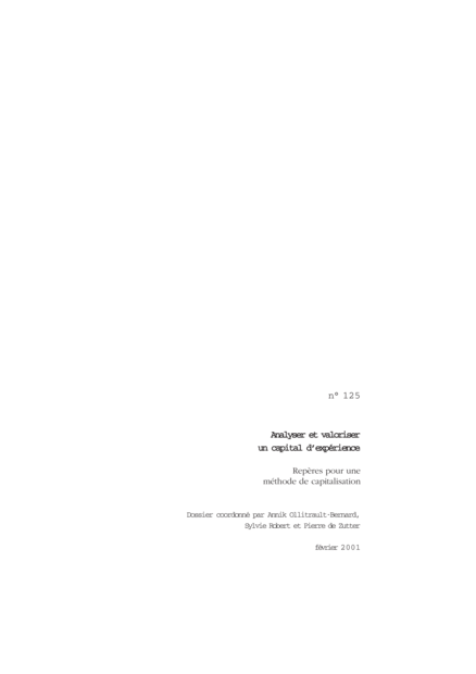 Analyser et valoriser un capital d’expérience: Repères pour une méthode de capitalisation