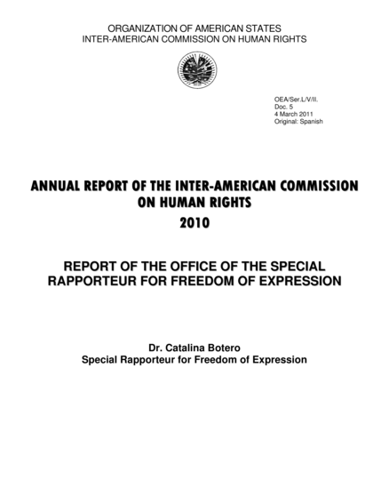 Inter-American Commission on Human Rights, Office of the Special Rapporteur for Freedom of Expression (2011), vii, 415 pp.