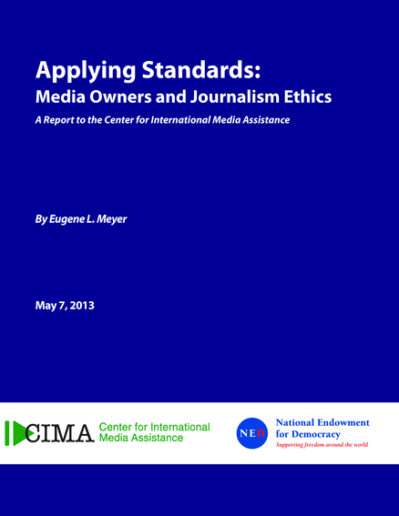 "While several codes in these countries [where news media are considered less free] call for media owners to place responsibility for content above their commercial interests, the reality is that when promulgated by governments they can threaten rather than enhance freedom of the press. When voluntary, they are little more than aspirational. Thus, some view the very notion of codes of ethics for media owners as potentially dangerous as well as ineffective. Nonetheless, media funders and implementers are urged to assist groups that seek to hold media owners accountable for the sins of omission and commission that occur in the publications, broadcast networks, and other media they own and control. As the funding of public-interest journalism becomes more challenging, notions of corporate social responsibility and good governance in management of media become more relevant and confidence-building actions that will encourage change across the ownership landscape, old and new, are urgently needed." (Introduction, page 7-8)