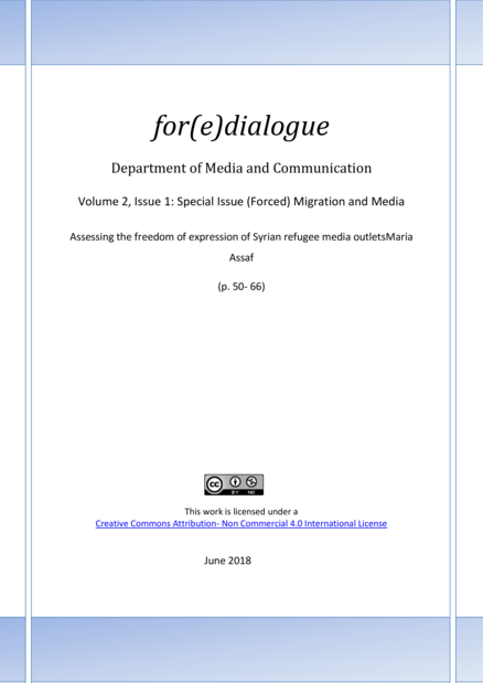"Syrian post-uprising media outlets arose during the peaceful phase of the Syrian uprising in early 2011 (Salazar-Ferro, CPJ, 2014). Fewer than 30 of these outlets, funded by Western countries, survived and gradually moved to Turkey, escaping censorship and deteriorating security in Syria. In Turkey, they still face challenges such as security threats and an uncertain legal status. This article focuses on the challenges that threaten refugee reporters' freedom of expression. Its aim is also to bring an understanding of the techniques refugee journalists use to mitigate these challenges, which can inform other reporters in similar conditions. This research was carried out utilising a case-studies framework and speaking to seven editors in chief of post-uprising media outlets in Istanbul. It concludes that Syrian post-uprising media face severe restrictions to their freedom of expression, but survive through a mixture of collaboration, creativity and resourcefulness." (Abstract)