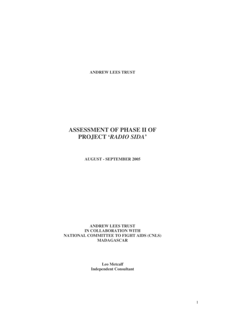 "The study revealed important coverage by Project ‘Radio SIDA’ of the targeted populations. 89% of the population that was studied declared having heard about AIDS on the radio. Radio is clearly the most important source of information for both urban and rural populations. Given that 68% of the population also knew that the broadcasts were produced by ALT, it can be concluded that a large part of their knowledge about HIV originated from Project ‘Radio SIDA’. Knowledge about AIDS was impressive, and 75% of the population could quote blood and sexual relations as ways of transmitting HIV/AIDS, and 77% could quote both fidelity and condoms as means of prevention. More fundamentally, the Focus Group Discussions revealed that the broadcasts seem to have had considerable impact on the population’s belief in the existence of HIV/AIDS, given the characteristics of the region this is really quite a success. Project ‘Radio SIDA’ can congratulate itself for having considerably increased AIDS knowledge in the urban and rural populations of the Anosy and Androy regions after undertaking only two sub-projects that each lasted 7 months and only cost $25,000." (Executive summary)
